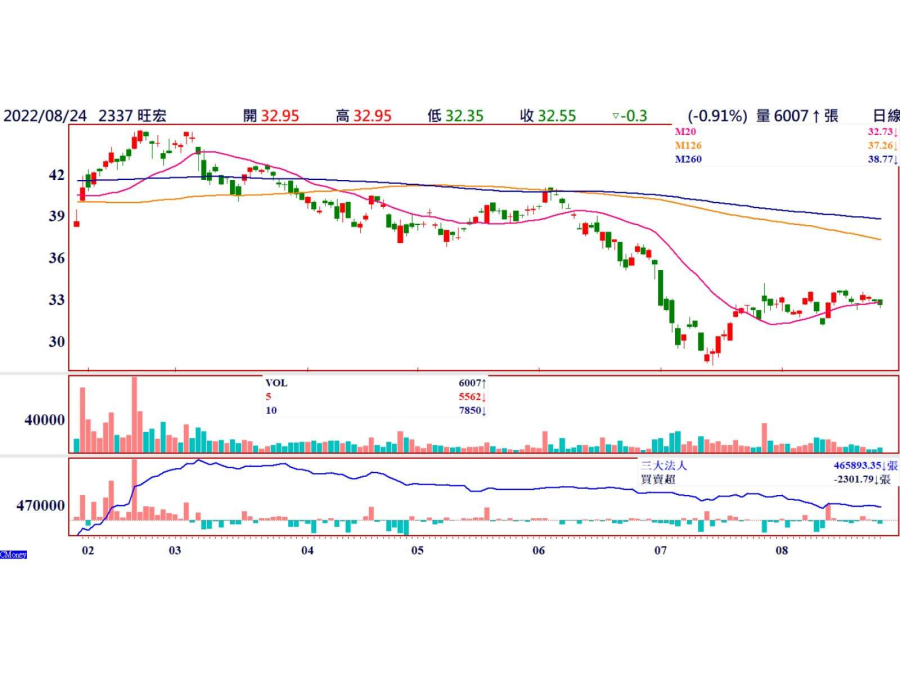 旺宏股價今年三月一度漲到45元,之後不斷震盪走低,七月最低28.2元,近期股價開始回升一度達34.15元。今年外資大賣台股1兆600億,反而累計買旺宏5.5萬張,顯然外資也是看好旺宏今年營運獲利。目前融券空單2595張都形成套牢,有機會演出軋空走勢。年線39元將是短期目標價。