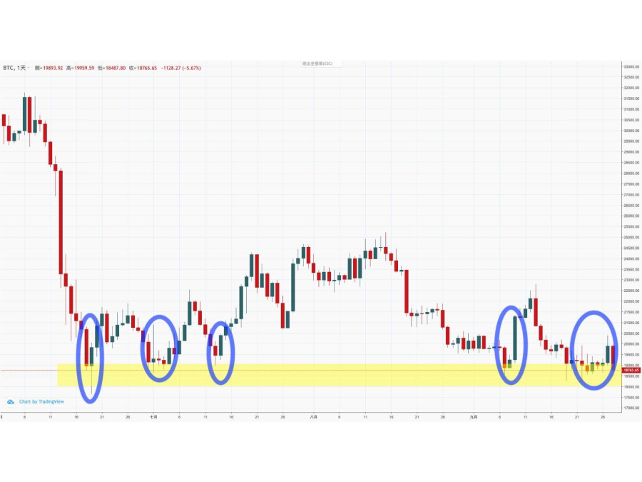 最後從BTC的技術面來分析,近期美元強勢升值雖然讓BTC挑戰二萬大關失敗,但並沒有進一步跌破一萬八的支撐位置,顯然此處已成為買盤的關鍵支撐價位。
