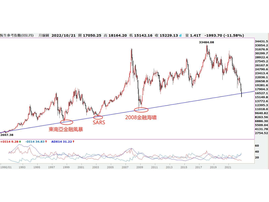 從這觀點來看兩岸三地的股市,10月24日都是開高走低,恆生指數下跌-6.4%,上證指數下跌-2.02%,加權指數漲+37.78點,不僅沒有跟上10月21日道瓊指數大漲+748點的反彈走勢,而且恆生指數跌破1997年東南亞金融風暴的6544.79低點連接2003年SARS的8586.7低點所形成的超長期上升趨勢線支撐,這條支撐線曾經守住2008年金融海嘯的衝擊,卻沒撐住這次的COVID-19疫情+香港國安法的雙重打擊,在習近平全面掌權改寫鄧小平主張的權力分享,習近平的中國復興夢代表著與西方資本主義價值觀的矛盾衝突擴大,「資金外流大中華圈」是未來五年甚至更久的投資主旋律。