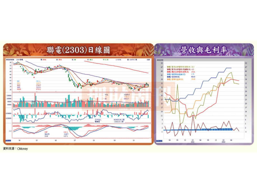聯電於法說表示第四季營運面臨終端需求下滑,無法置身於半導體產業庫存調整之外,晶圓出貨量將季減十%,在美元報價持平下,美元營收將同幅季減。聯電也跟隨台積電(2330)腳步宣布下修今年的資本支出,由原先的三六億美元下修至三○億美元,有助降低市場對未來供過於求的疑慮,下修財測及資本支出算是市場預期的利空實現,或許可提高仍在觀望的資金進場意願。
