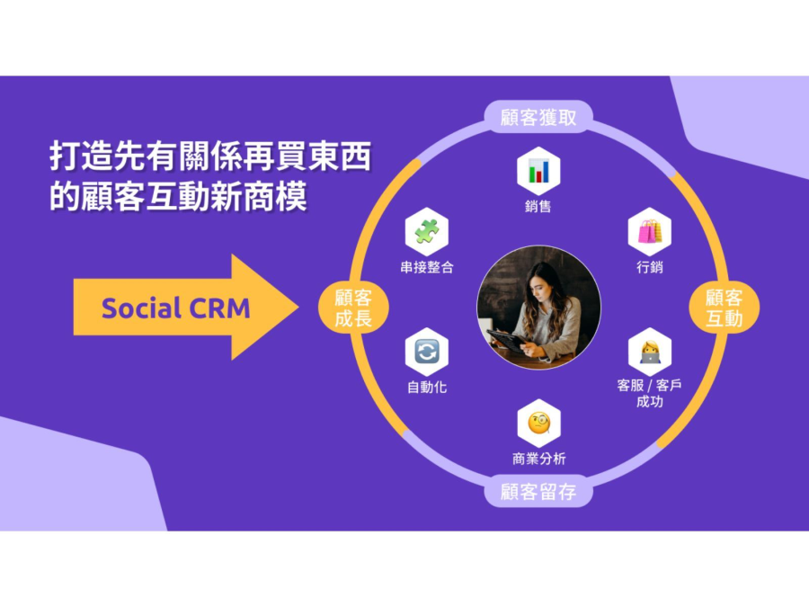 Social CRM隨著社群與即時通訊軟體的興盛與應用成熟而被日漸重視,在既有傳統CRM系統的基礎上,解決了過去需要一定程度的預算與顧客數量才能夠導入的限制,提供企業即時的數據更新方式,能夠即時活化應用於精準再行銷。