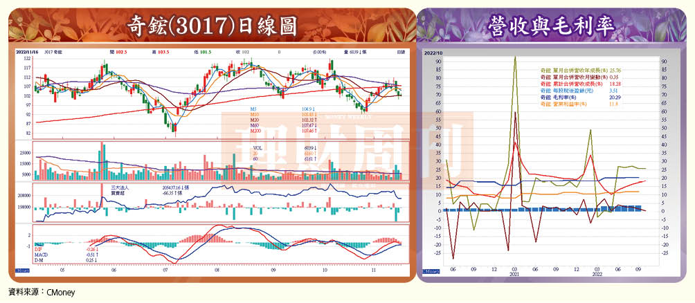 奇鋐因受惠白牌伺服器相關應用產品出貨量的持續攻高,九月營收因此得以五○.五二億元,首度突破五○億元整數關卡,同時也成功締造單月、單季、累計前三季營收,同步創下新高的好成績,基本面實績表現仍持續向上。