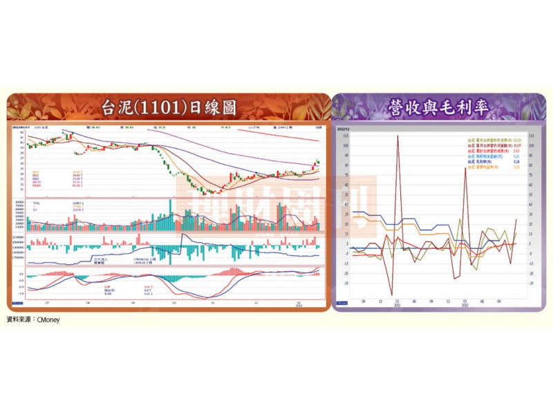 例如景氣已落底的水泥產業,去年第四季受惠旺季拉貨效應,中國水泥報價已上漲五%,價量齊揚帶動營收季增,市場預期在中國政府刺激房市政策下,將讓市場需求落底回升。台灣水泥則受惠台商回流及政府貨物稅減半,內需保持強勁,兩岸均有布局的台泥(1101)及亞泥(1102)將因此受惠。