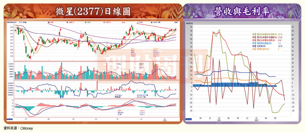 例如受惠英特爾、超微及NVIDIA新產品推出的主機板產業,去年第四季營收已季增,即便今年第一季因農曆過年工作天較少,營收仍可維持持平表現,市場樂觀預期今年獲利有望隨營運同步落底回升,法人偏好的技嘉(2376)及微星(2377)將是主要指標。