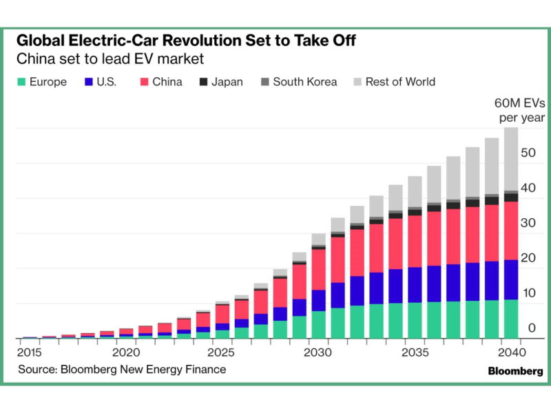 根據彭博社(Bloomberg)在2018年初步調查(見圖一),中國(紅色區域)的銷售成長幅度居其他國家之冠。以中國而言,現階段EV的銷售成長,不再藉由補助,而是消費者自發性購買。也就是說全球EV零組件廠,其生存之道就是應付龐大中國內需,創造營收動能。