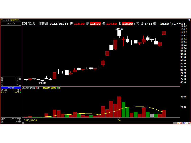 由於電動巴士、高速巴士車架等相關產品,以及外銷訂單出貨,大多屬於毛利率較佳產品線,法人機構因而看好江申下半年度,伴隨在手訂單的陸續發酵,營運毛利率將有進一步走高機會。