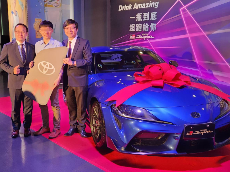 29日記者會上,TOYOTA GR SUPRA跑車得主鍾先生現身分享,他說,自己是忙碌的上班族,因為喜歡台塩海洋鹼性離子水溫潤的口感,購買了兩箱,看到箱購有加碼抽獎機會,上網登錄,沒想到真的被幸運抽中,好多朋友羨慕25歲就能擁有生命中的第一台超跑,特別感謝臺鹽送豪禮。