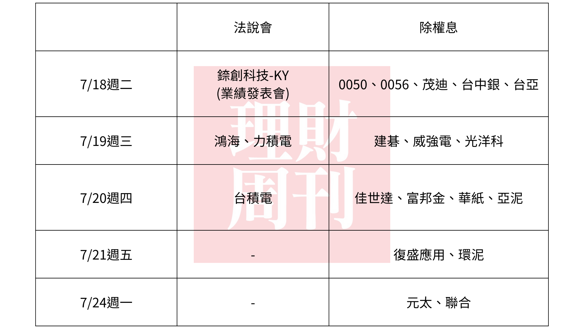 本週隨著蘇姿丰抵台,AI概念股蠢蠢欲動;記憶體價格也有落底跡象,第三四季價格可能回升,更多台股當週大事與行情展望: