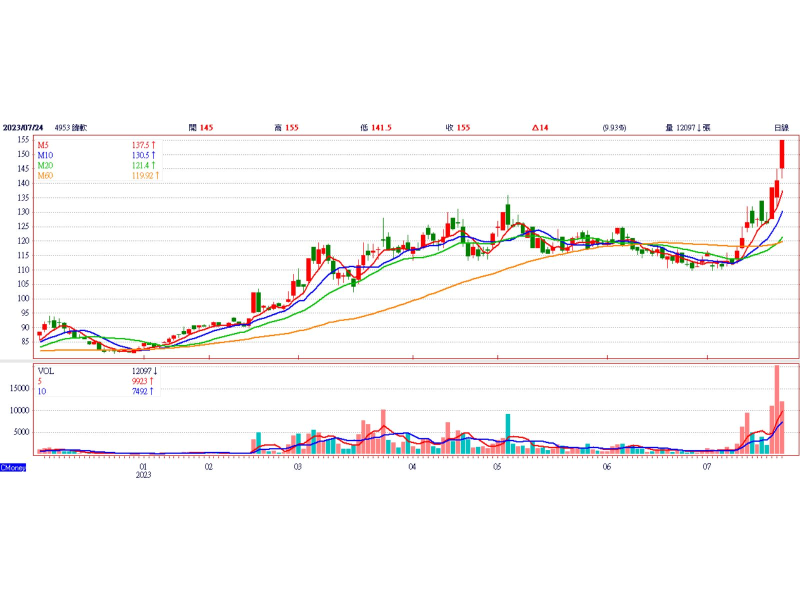 專注資訊服務商緯軟(4953)今(24)日攻漲停,仍有高達近7000張排隊等買,法人指出,該公司在人工智能( AI)狂潮下,搭上車用與智慧醫療兩大產業新趨勢外,最重要的是今年5月辦理現金增資案,激勵股價攻漲,以今日漲停價155元計,每張賺逾6萬3000元,預計28日增資股撥券,原先市場憂慮的增資股賣壓一旦突破,股價後市上攻將無極限。