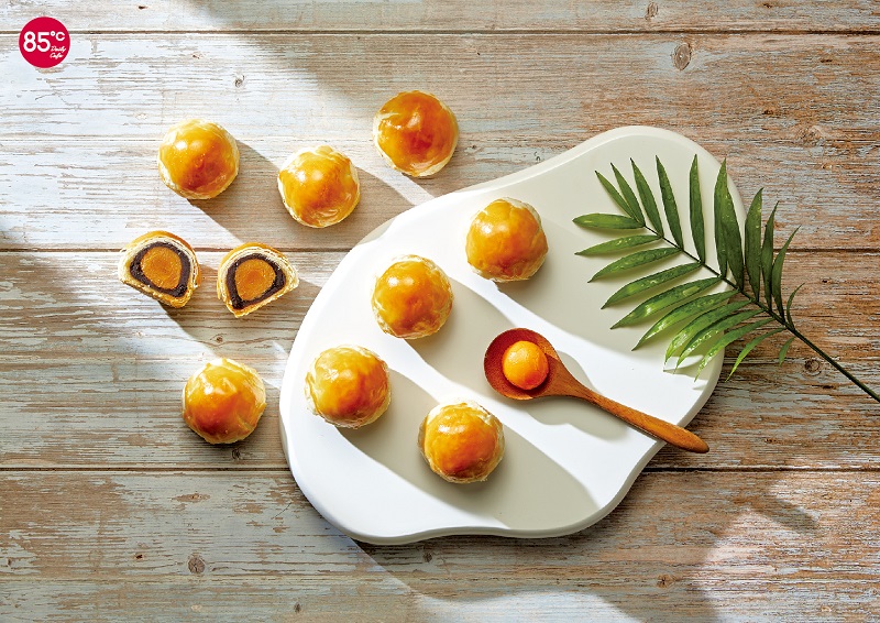 美食-KY(2723)旗下85℃推出9款中秋禮盒,除了獨家註冊商標「白玉東坡酥」,暢銷熱賣「琥珀蛋黃酥」外,今年融入台式風味「剝皮辣椒雞」、「肉鬆麻糬」、「綠豆肉鬆」等內餡,推出全新月餅禮盒,搭配精美的仿木框外盒,宛如一道道雋永台菜。