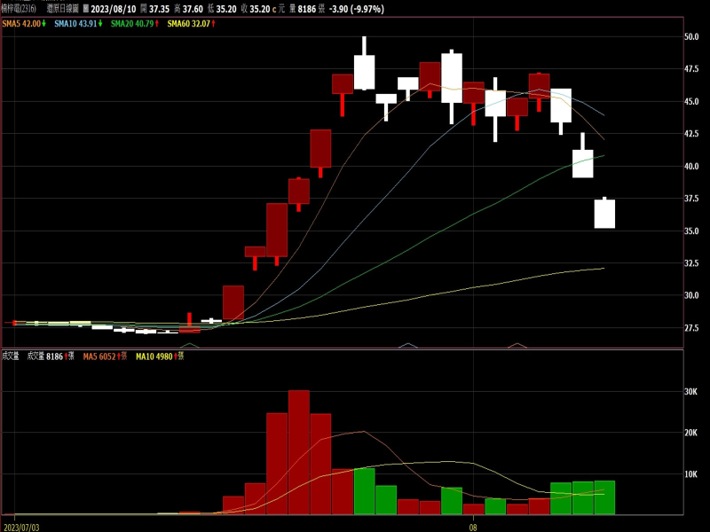 PCB廠楠梓電(2316)因終端市場需求疲弱,目前保守看待第3季營運,楠梓電表示可能要到第4季才有機會慢慢好轉,今年下半年能否擺脫虧損仍有待觀察,10日跌停,跌幅9.97%,目前已經連3跌,跌幅達25.27%。