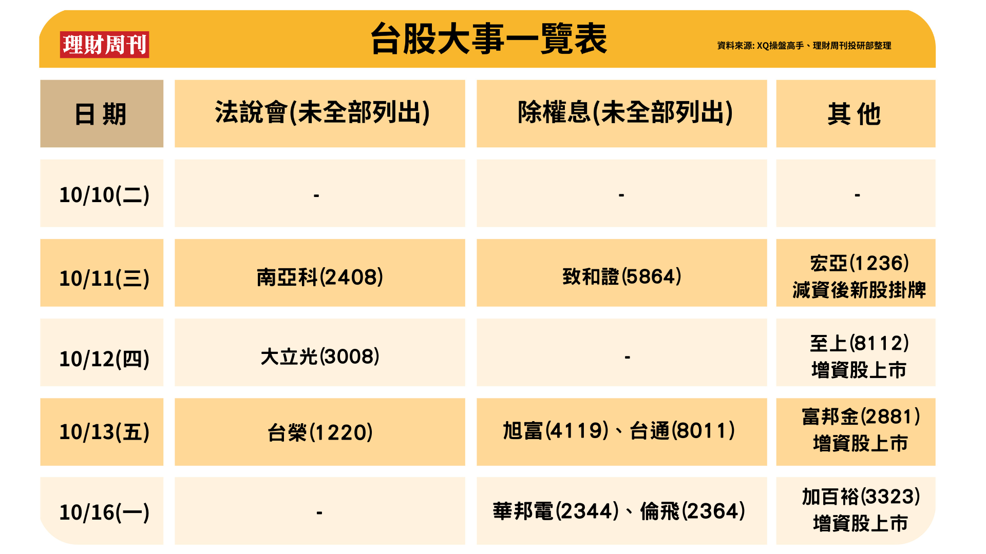 近期市場仍關注AI市場,輝達近期小幅成長,台灣相關供應鏈也是蠢蠢欲動,近期更是傳出輝達(NVDA)執行長黃仁勳將再度來台,參加鴻海10月18日科技日活動,由於其在今年5月訪台時,在台灣掀起一波AI旋風,帶動AI族群一波超級多頭行情,故市場期待AI是否能歷史重演,AI概念股緯穎(6669)收盤漲2.47%、世芯-KY(3661)收盤漲2.4%、閎康(3587)收盤漲2.26%。