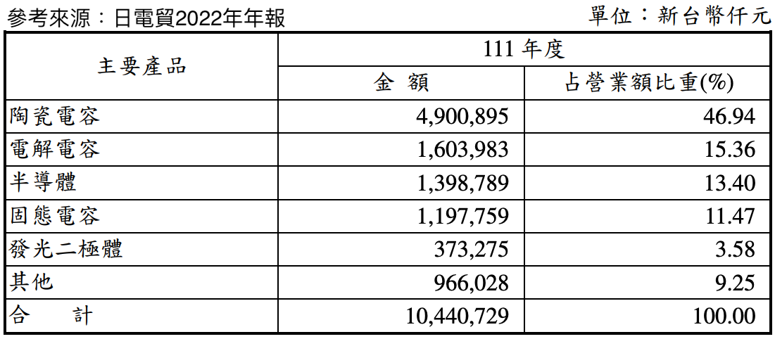 很多人常常吵被動元件,動不動就是拼國巨,但又怕老闆調皮,所以買被動元件概念股也常常被大家當作是高風險投資,其實這個產業中還是有代理商的,最具代表性的當然是國內龍頭日電貿。目前公司主要代理品牌以日系為主,包含全球最大的鋁質電解電容廠商日本佳美工Nippon Chemi-con的產品起家,也同時代理日本大廠Nippon Chemi-con、Panasonic等品牌,所以日電貿其實也不用擔心什麼技術研發問題,反正他手上擁有全世界最強的被動元件產品,只要市場需要被動元件,那麼日電貿就有辦法賺到錢,而且你也不用努力研究什麼專業術語或各家廠牌專長及市占,只要知道大方向即可,因為公司能銷售全品項的被動元件。