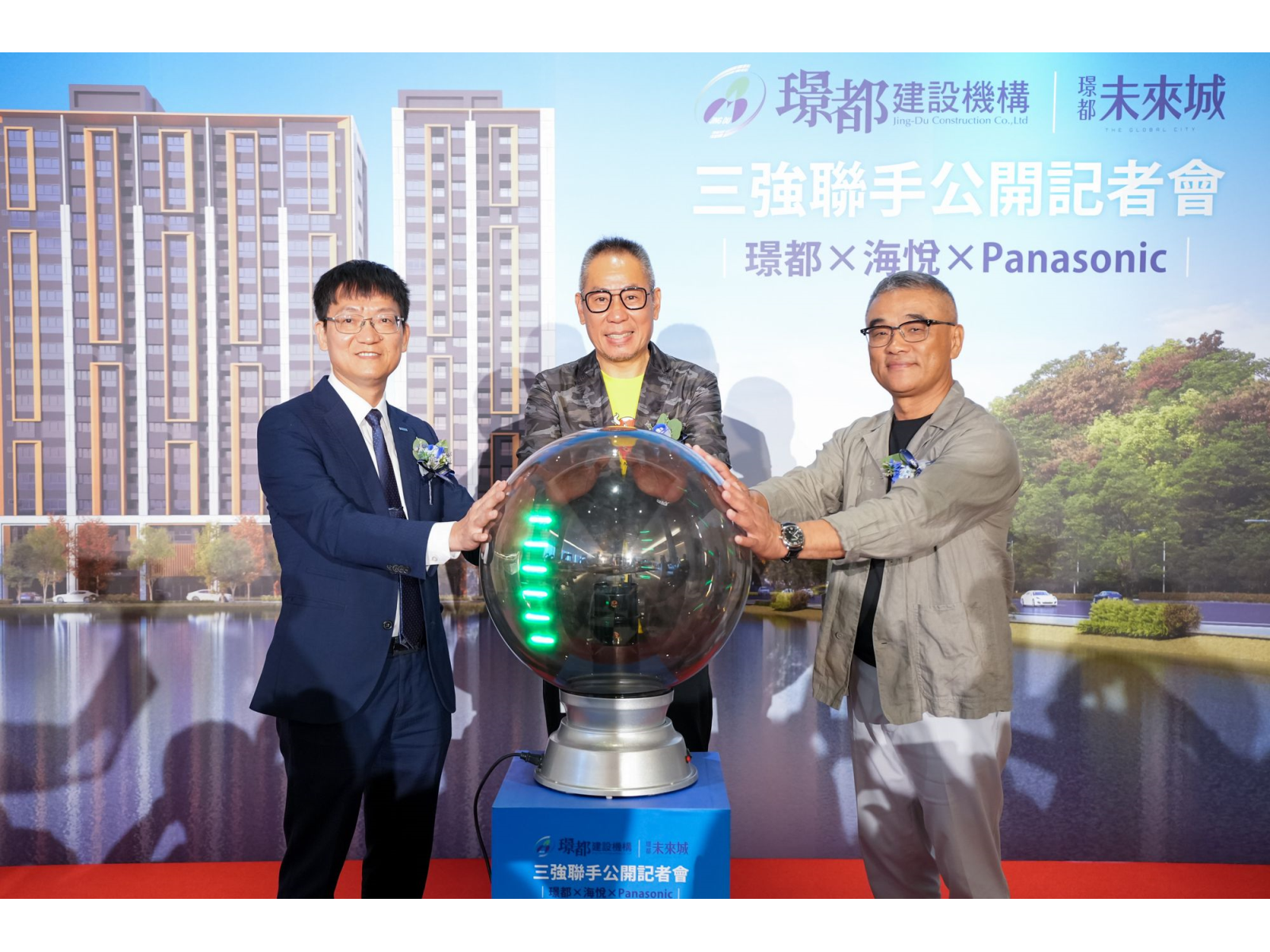 圖說:璟都未來城強強聯手,台灣松下董事長黃政成(左起)、璟都建設機構總經理高林鋒及海悅國際總經理王俊傑共同合影。
