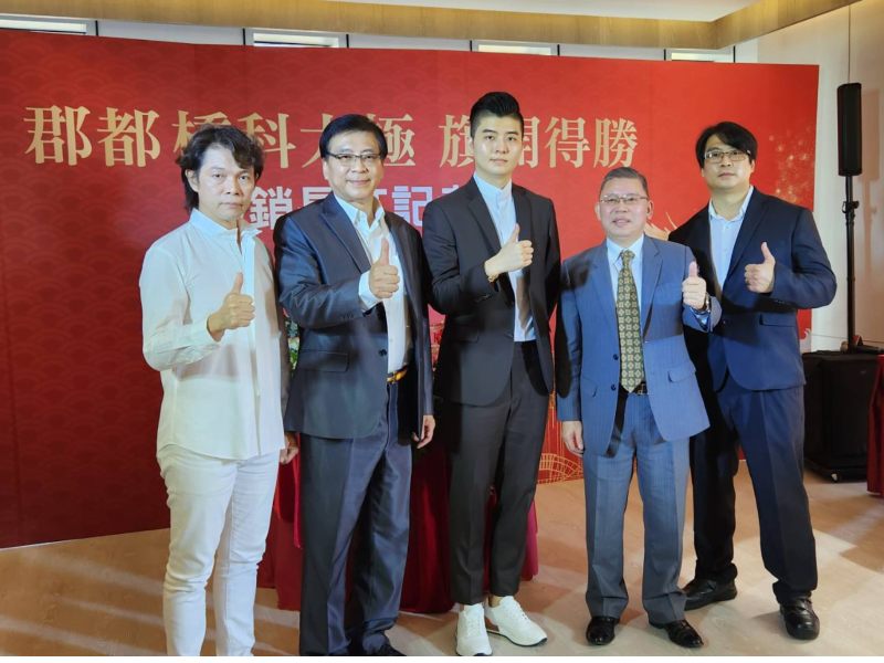 郡都集團董事長兼任執行長唐承(圖中)於記者會上表示,該案自去(2023)年10月進行銷售,受到護國神山台積電加碼投資高雄,設廠效應帶來人口紅利,使得距離台積電楠梓廠車程約9分鐘的「郡都橋科大極」銷售創佳績,在短時間內幾近完銷,有台積電助攻,北高雄房市更顯活絡。