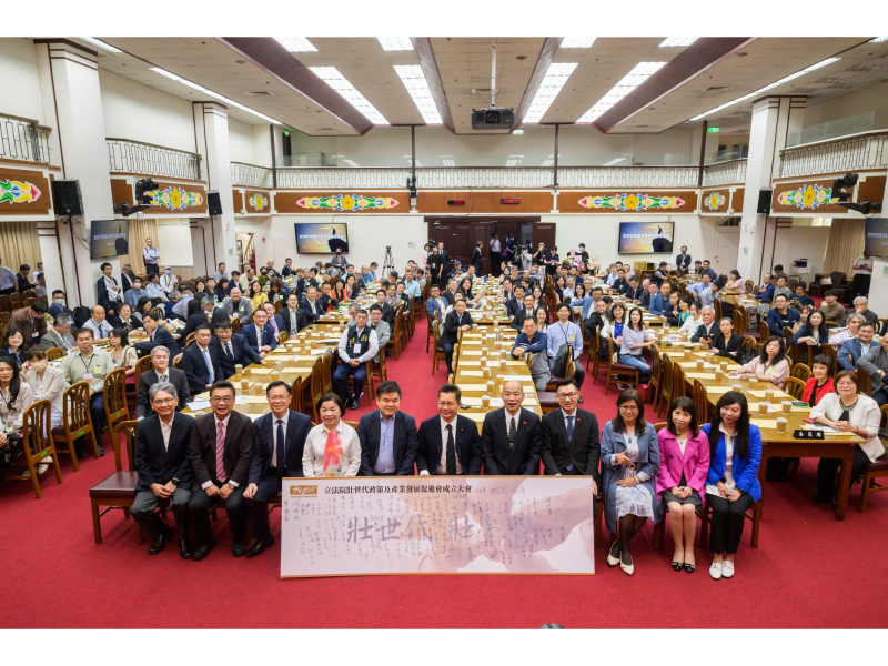 立法院本屆會期最具份量的議題性次團「立法院壯世代政策及產業發展促進會」26日上午正式成立,除了來自朝野各黨的多位立委齊聚一堂,立法院長韓國瑜、副院長江啟臣、民眾黨主席柯文哲以及來自官方、民間超過200位的官員、專家學者也都親自到場祝賀,一致表達對「壯促會」的支持及期許。