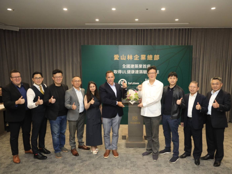 「愛山林企業總部」外觀以玻璃帷幕為設計,內部除導入光纖系統、科技化建築配備外,為提供員工優質辦公場域與室內環境,特與UL Solutions合作,就空氣品質、水質、清潔、照明和噪音進行檢測,並獲得 UL 驗證,特於5月14日舉辦健康建築驗證標誌頒發典禮。
