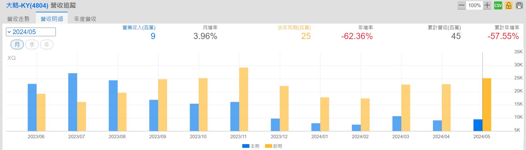 ▲ 大略每月營收(資料來源:XQ全球贏家)