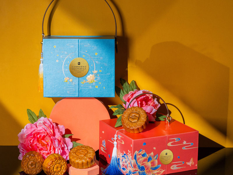台北遠東香格里拉搶攻中秋送禮商機,推出五款月餅禮盒及三款精緻禮籃,月餅口味多達15種,傳統與創意兼具。豪華月餅禮盒「金燦吉祥」含四顆廣式月餅及三款與台灣果物永續品牌「果嶼」獨家合作的果乾茶,品茶配餅香。經典月餅禮盒「榮華恬逸」含六款創新口味,選用在地水果及低甜度的天然海藻糖製作,另一款新品「冰皮雪月」月餅禮盒,清新細緻,還有連年熱銷的「燕窩奶黃」及「金沙奶黃」月餅禮盒。