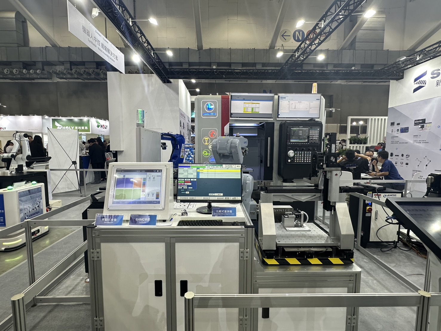 除此之外,新代也向我們展示,其中控器的多元性,除自家產品外,它牌機械手臂也可以搭配使用,親臨新代展場,便可看到一台YASKAWA生產的機械手臂連接新代的中控器,與多項機台合作完成產品的檢測;也可以看到兩台機械手臂,在中控器的控制下,猶如默契良好的同事,完美配合,當第一台機械手臂尚未完成作業前,第二台不會去移動桌上的產品。
