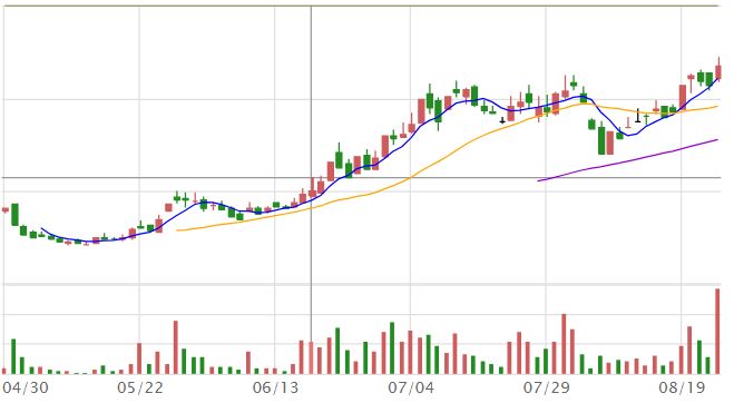 受此利多消息影響,東捷今(23)日股價爆量上漲,開盤價64.3元,目前股價震盪走高,最高觸及69.0元,盤中漲幅逾6%,離70元關一步之遙,截至中午12點成交量為83530元,量增508%,後續股價回落修正,以65.1元作收。