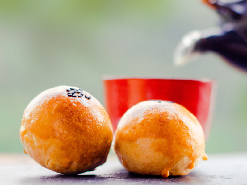 而飯店點心主廚特製「千層海鹽蛋黃酥」,選用法、日進口3種麵粉揉製,搭配蔗香十足的雲林虎尾糖、荷蘭無水奶油以及自製榛果奶油,在精準的控溫烘烤之下,外皮酥脆可口;為了讓屏東紅土鹹蛋黃更顯香氣,主廚特別使用58度金門高粱酒浸泡烘烤,再以低糖柔順的豆沙完美包覆,頂端撒上些許英國馬爾頓海鹽,一口咬下,多層次的酥脆口感與鹹甜內餡完美共舞,佐以北投麗禧為住客精心挑選的淡雅清甜的梨山紅茶,帶來別具風味的中秋味蕾感受。