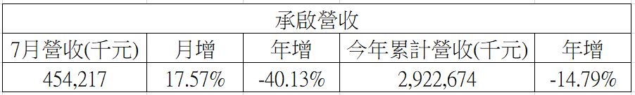7月最新營收為4.5億元,月增17.57%,年減40.13%,連續6個月衰退;今年1到7月累計營收為29.2億元,年減14.79%。最新EPS為0.1元,季增-70.59%,近四季EPS為1.13元。
