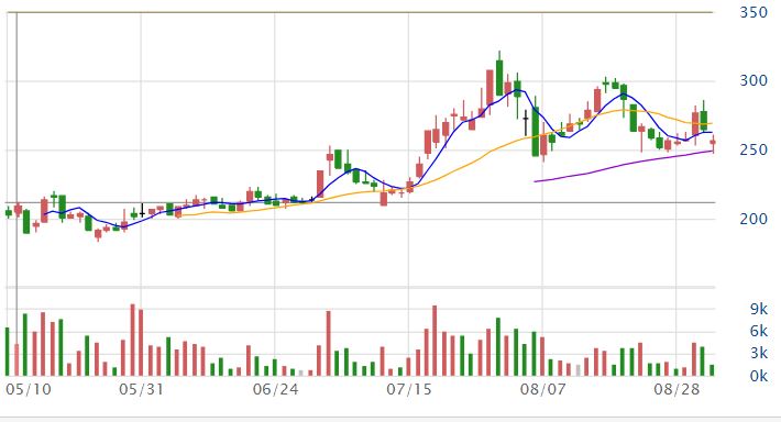 營建股永信建(5508)昨(2)日公布八月營收,月減53.20%,直接縮水一半,盤中股價立即反應營收行情,股價下殺,大跌4.33%。今(3)日永信建股價仍受影響,早盤跳空開低開在255.5元,目前維持震盪,股價暫報257.0元,跌幅3.02%,截至上午11點16分成交量為1474張。