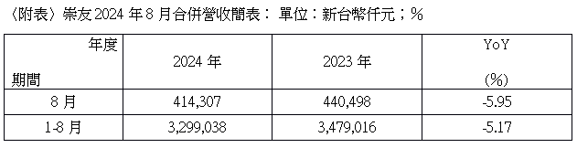 崇友8月營收達4.14億元 房市自住需求保持熱絡 電梯保養業務穩定成長