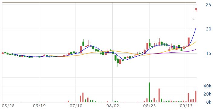 三晃今日跳空開高,以23.95元開出,開盤後即奔漲停,漲停價24.25元,漲幅9.98%,截至上午9點23分成交量為27847張。