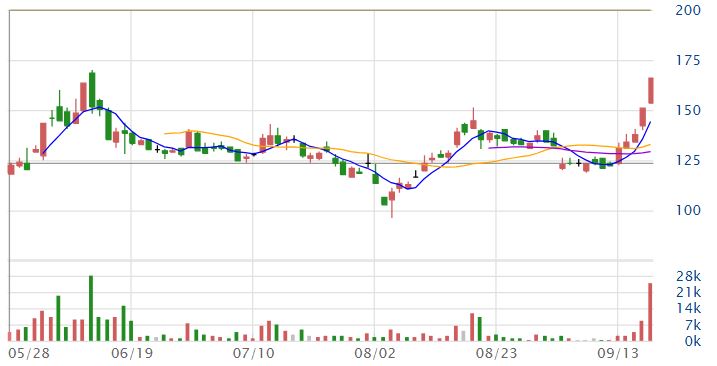 功率導線架大廠順德(2351)今(20)日早盤開在153.5元,盤中震盪向上,亮燈漲停,漲停價166.5元,漲幅9.90%,今日成交爆量,共計25208張,亮增187%,目前仍有26410張買單排隊等候中。