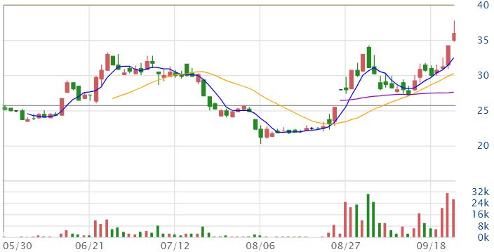 光電股正達(3149)連三日股價爆量上漲,今(24)日早盤跳空開高,開在35.00元,目前維持高檔震檔,股價暫報36.40元,漲幅6.12%,截至上午9點26分成交量為26618張,量增270%,今日突破前高,轉為多頭趨勢。