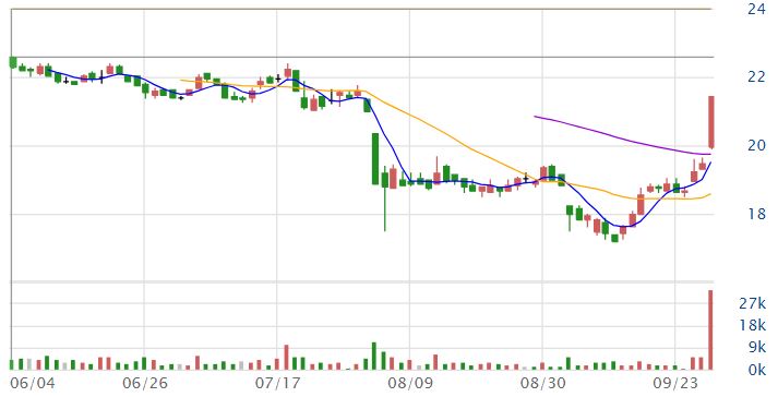 同為鋼鐵股的中鴻(2014)今日同樣盤中爆量,早盤以19.95元開出,接近上午11點時順利亮燈漲停,漲停價21.45元,漲幅10%,今日成交量為32450張。