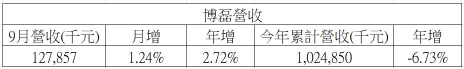 9月最新營收為1.2億元,月增1.24%,年增2.72%;今年1到9月累計營收為10.2億元,年增-6.73%。最新EPS為0.14元,季增250.0%,連續2季成長,近四季EPS為0.43元。