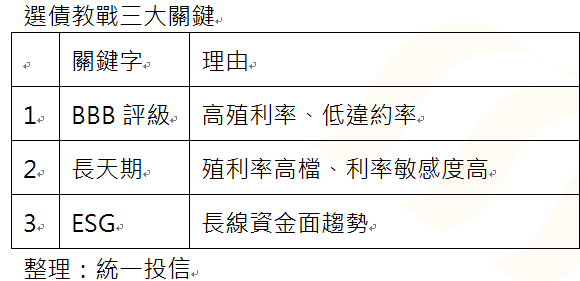 押注川普交易之債券空頭回補,以及聯準會利率如預期降息一碼,帶動債市擺脫低迷。由於降息不會只降一次,要掌握降息循環的債市行情,可以從三大方向選擇投資標的,包括信用評級、存續期和長期趨勢。即將在11/25~11/27募集的統一ESG投等債15+ETF(00966B)(基金之配息來源可能為收益平準金),即是擁有「BBB評級、長天期、ESG」三大關鍵優勢的固定收益型商品,適逢睽違四年的降息循環周期,挑選好債、前進債市正是時候。