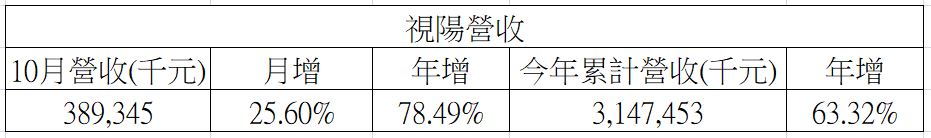 10月最新營收為3.8億元,月增25.6%,年增78.49%,連續11個月成長;今年1到10月累計營收為31.4億元,年增63.32%。