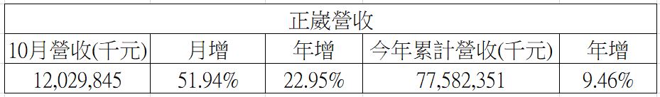 10月最新營收為120.2億元,創40個月新高,月增51.94%,年增22.95%;今年1到10月累計營收為775.8億元,年增9.46%。最新EPS為1.49元,季增156.9%,近四季EPS為3.71元。
