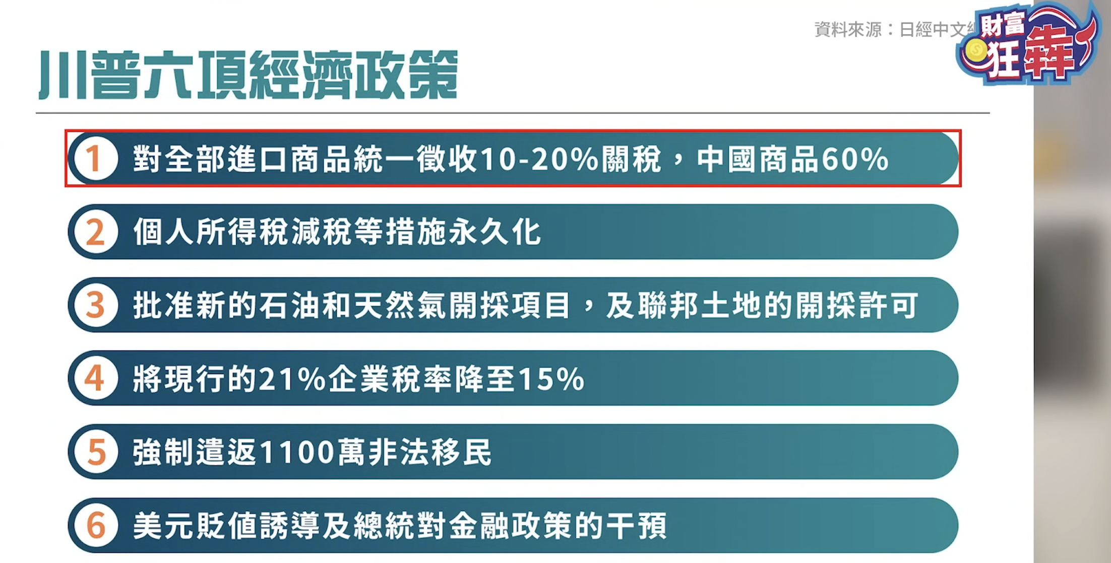 川普上任後提出六項經濟政策,市場可能如何變化?而聯準會過去數年升息降通膨的努力,是否能繼續延續?外匯專家李其展在網路財經節目《財富狂犇》分析,認為這些方向雖然對企業有激勵效果,能夠在一定程度上促進經濟發展,但也會有刺激消費、提昇成本的影響,整體對於壓制通膨來說,成效可能有限。