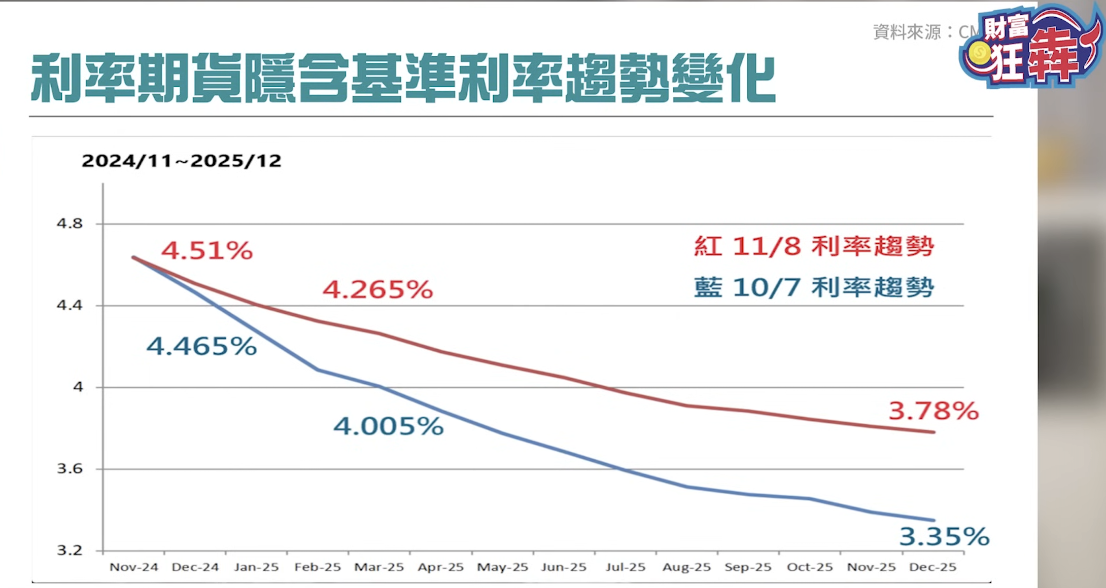 由於川普新政也有刺激通膨的可能性,李其展透過利率期貨變化說明:市場正在反應並作出相應的調整。