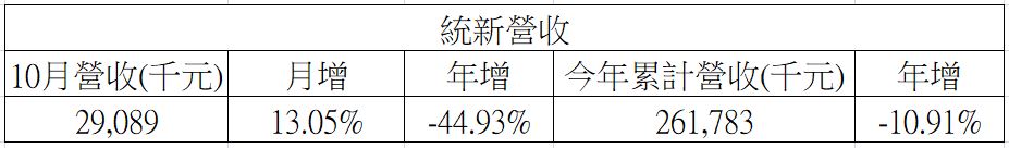 10月最新營收為2908萬元,月增13.05%,年增-44.93%,連續4個月衰退;今年1到10月累計營收為2.6億元,年增-10.91%。最新EPS為-1.02元,近四季EPS為-3.3元。