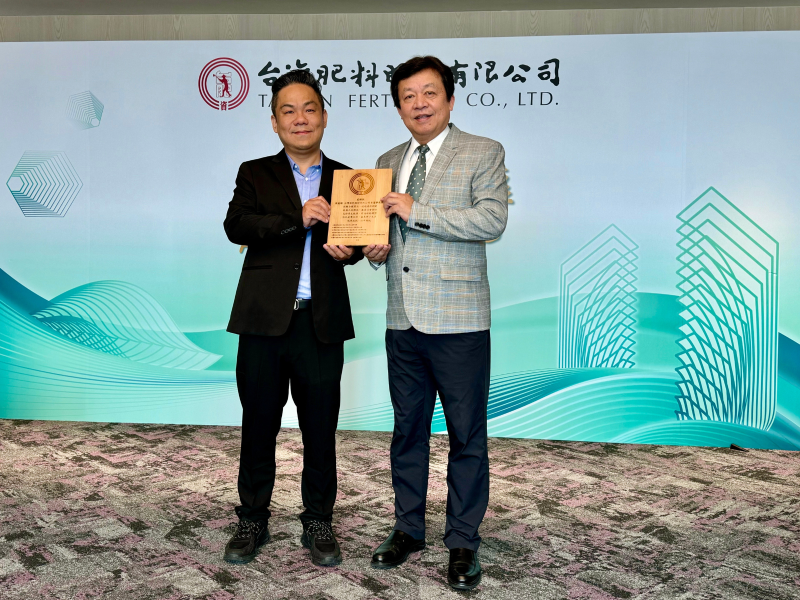 圖說:台肥勞工董事黃秉專(左)代表全體員工感謝李孫榮董事長帶領台肥華麗轉身並開啟綠能元年。