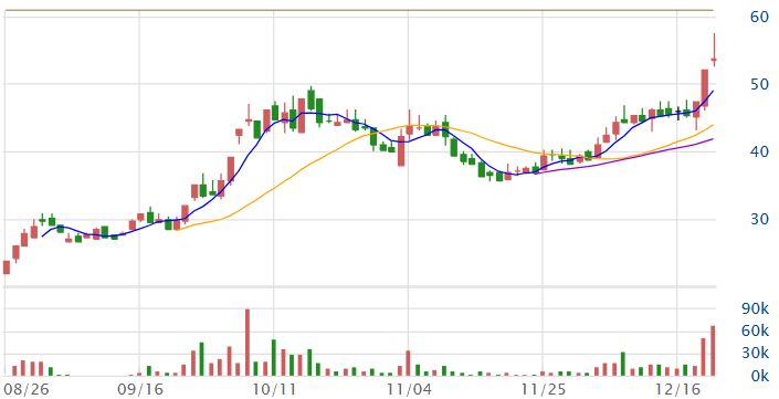 另一「碁」兵,LED封裝廠立碁則是因為加入矽光子聯盟,引爆買氣,今日盤中也一度亮燈漲停,然後續漲幅收斂至2.68%,股價報53.6元,盤中交易量為67760張。