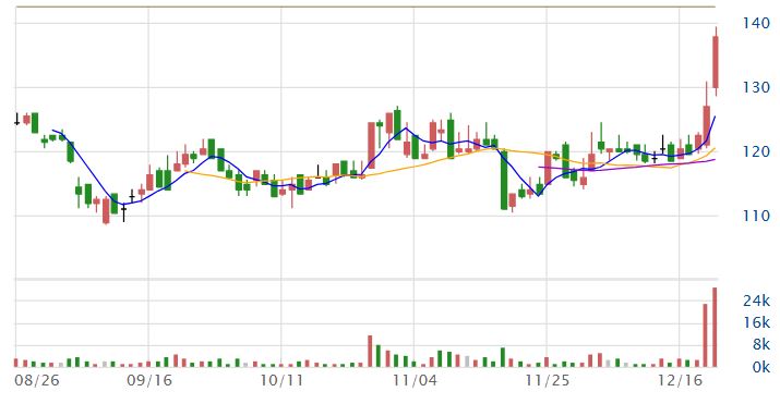 啟碁今日開盤價130.0元,盤中一度以139.5元亮燈漲停,目前股價回落,於137元上下震盪,準備蓄力重回漲停,目前盤中交易量為28816張。