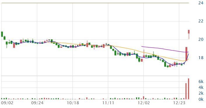 在疫情擴大的背景下,不織布供應商康那香(9919)受惠於市場對防疫產品需求增加,其抗菌濕紙巾和醫用口罩等產品銷售前景看俏,帶動股價連續兩日大漲。今(27)日康那香跳空開高開在20.70元,開盤不到二十分鐘即攻上漲停,漲停價21.05元,漲幅9.92%,盤中交易量為7006張。