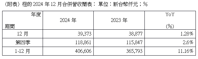 橙的表示,全年AM業務、OEM業務營收占比分別為77.4%、22.6%,AM業務受惠旗下歐洲地區雙軌業務轉型策略成效逐步放大,且日本、台灣地區客戶陸續增加TPMS備貨力道,加上OEM業務隨著中國商用車龍頭宇通汽車對於商、客用車客製化TPMS下單增溫趨勢,進一步推升2024年12月、第四季、全年營收表現皆保持正成長水準。