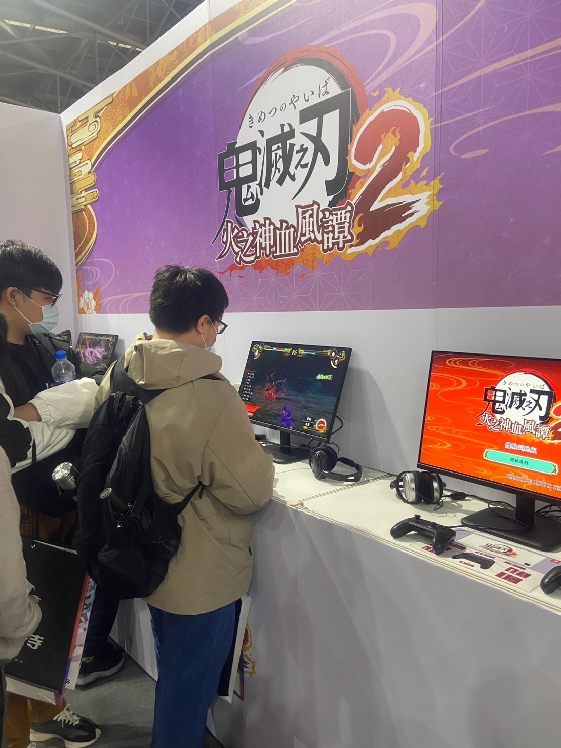 遊戲區中,最大攤的非任天堂莫屬,可惜沒有看到Switch 2的蹤影,但現場仍聚集不少體驗試玩的民眾,包括熱門的《超級瑪莉歐》、《動物森友會》及最新的《鬼滅之刃2 火之神血風譚》等等。