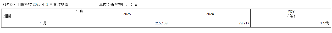 上曜表示,1月份的營收增長,一方面,受惠於南部房市持續熱絡,帶動上曜集團旗下包括「The King」、「梅菲爾」、「帝凡內」以及子公司的長榮泰山、荷九暻等成屋建案陸續交屋入帳完成;以及子公司永捷、信立及普大良好的在PU合成樹脂市場中穩健擴大營運規模與市占率;另一方面,子公司世紀民生以「AI」為核心理念,除了布局在無人機與機器人市場外,隨著世紀民生入股華瀚保經,雙方結合在各自領域的專業知識,共同開發更多創新的產品與服務,此為將跨入數位金融市場的布局,不僅結合AI技術賦能,將生物數據與AI資料庫結合,逐步朝向「AI智能大健康」產業邁進,亦創造集團多元化布局的一大步,更將為上曜集團帶來全新的成長動能,提升公司的整體競爭力。