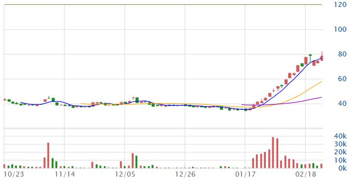 IC通路商擎亞(8096)近期股價強勢上揚,10日遭櫃買中心列為處置股,今日(24日)處於交易限制期間,但早盤仍衝上漲停,鎖住81.8元,刷新歷史新高,站穩5日線。隨後漲幅收斂,終場收在78.4元,上漲5.38%。