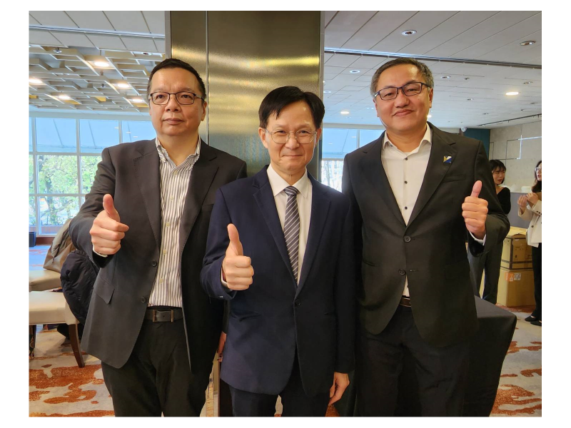 圖說:聖暉集團攜手子公司全面深化海外市場專案服務,總經理賴銘崑(圖中),與朋億總經理馬蔚 (圖左)、及銳澤總經理周谷樺(圖右),於新春媒體活動上共同合影。
