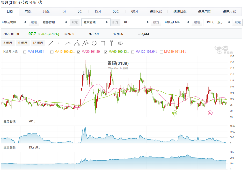 觀察景碩的融券變化也能發現玄機:每逢漲停,空單反而大增,完全不怕被軋,這正是「高手過招」的標準格局。這樣的操作節奏,不適合一般投資人跟進,因為風險與節奏都被主力掌控得死死的,若真的想跟上著這些利多做,也要記住,觀察融券變化,判斷是否該快進快出。